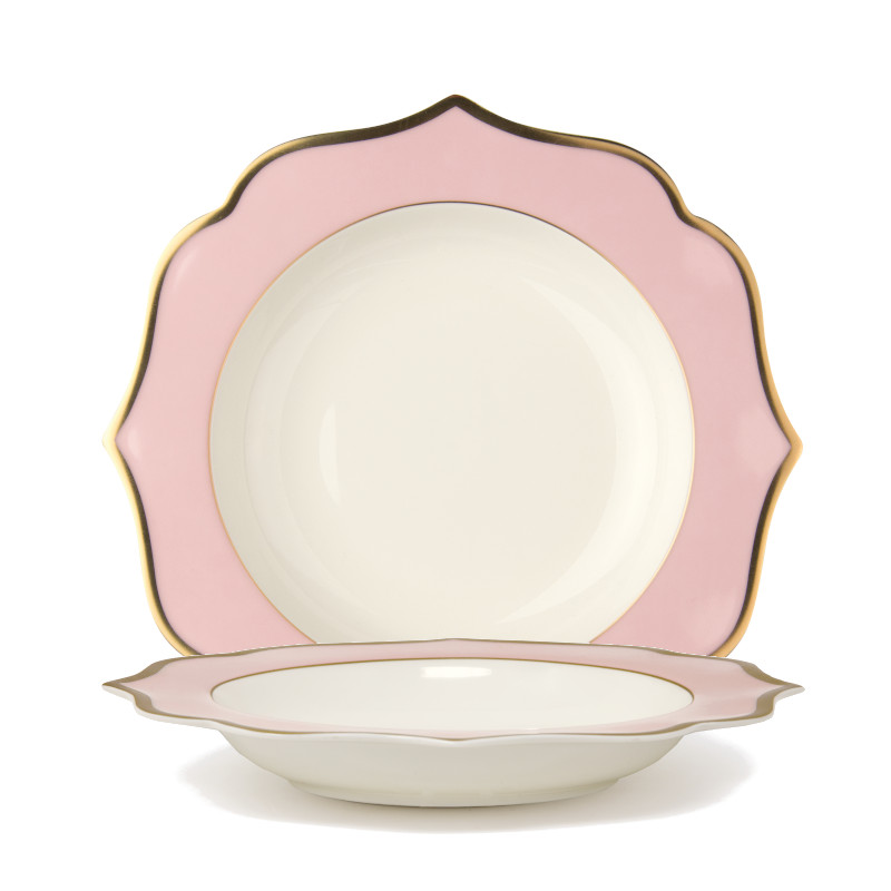 IONICA Servizio Piatti colore rosa con filo oro al bordo e filo Marly